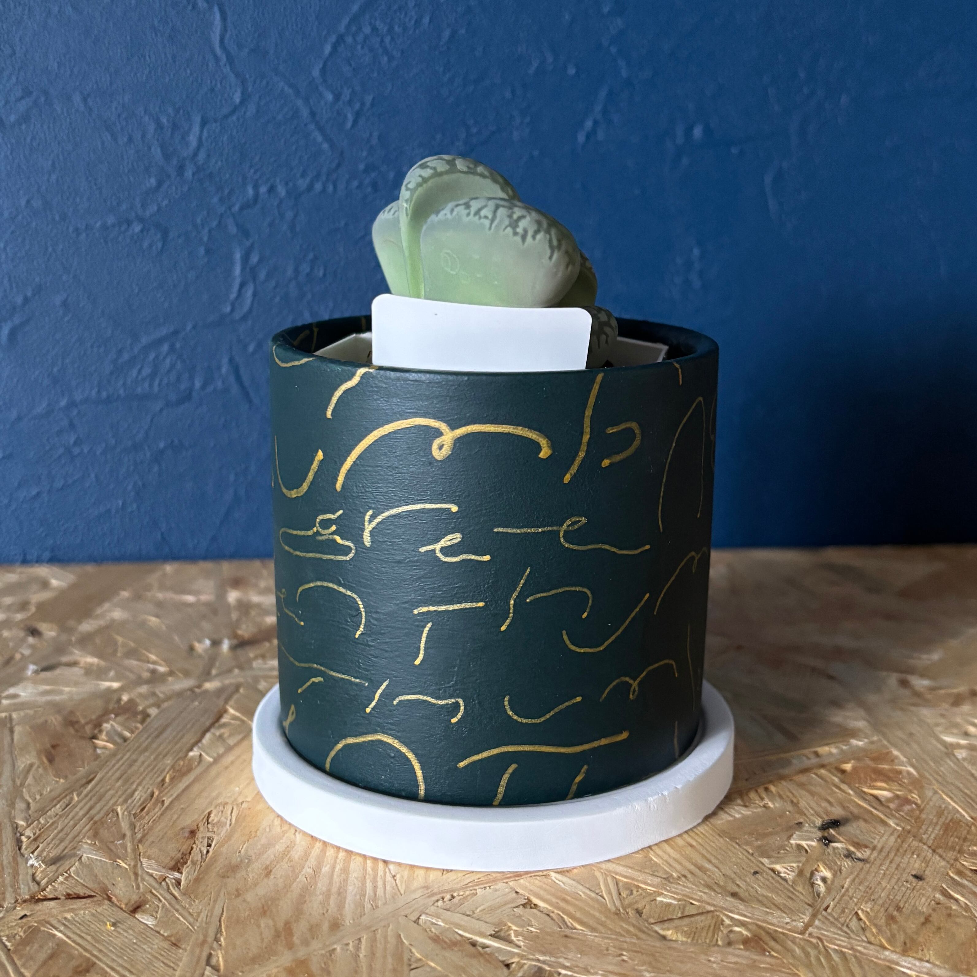 ひとつひとつ陶器やガラス素材の器にアクリル樹脂でペイントし、シリコンコーティングで防水加工を施した植木鉢作品"Painting Pot"です。