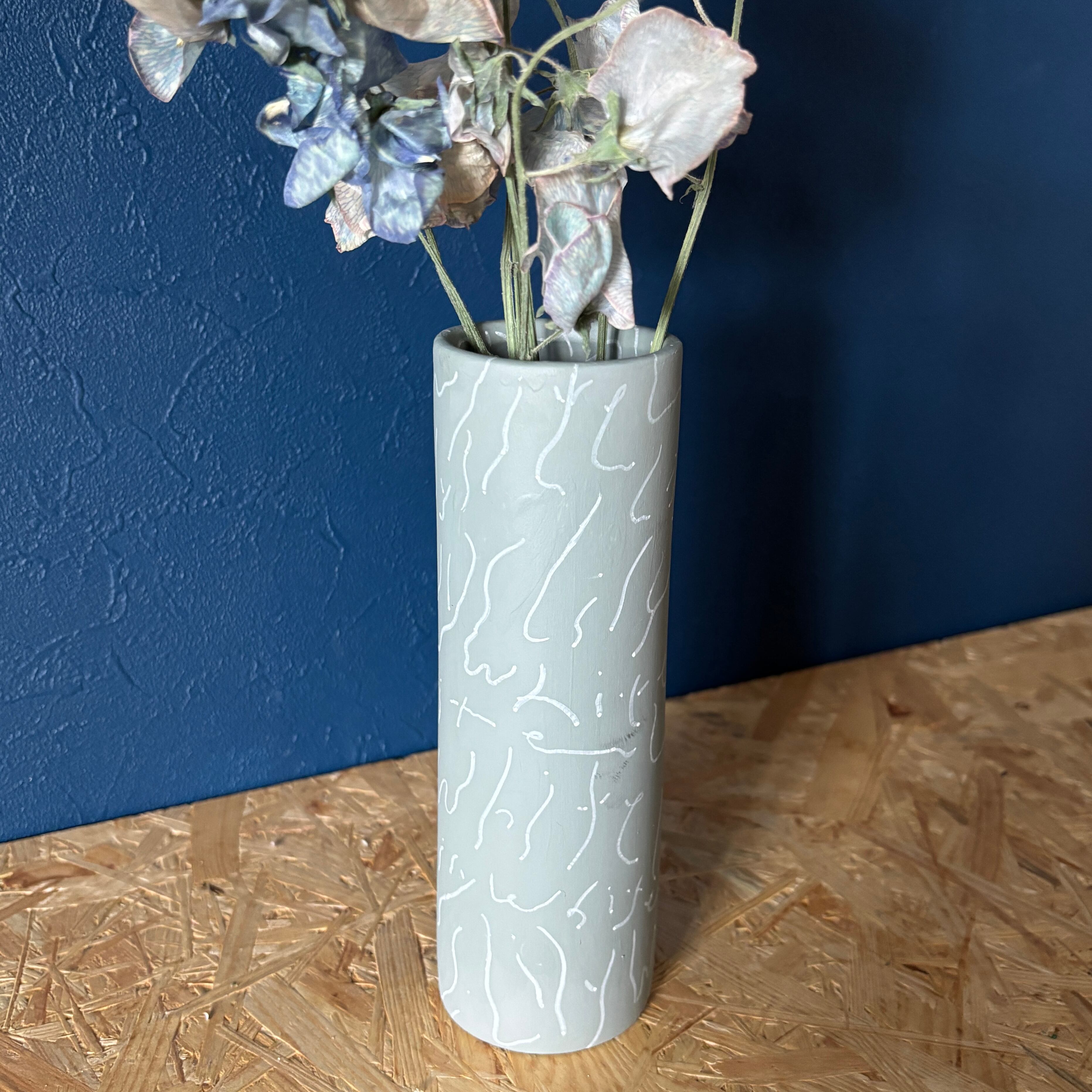 ひとつひとつ陶器やガラス素材の器にアクリル樹脂でペイントし、シリコンコーティングで防水加工を施した花器作品"Painting Vase"です。
