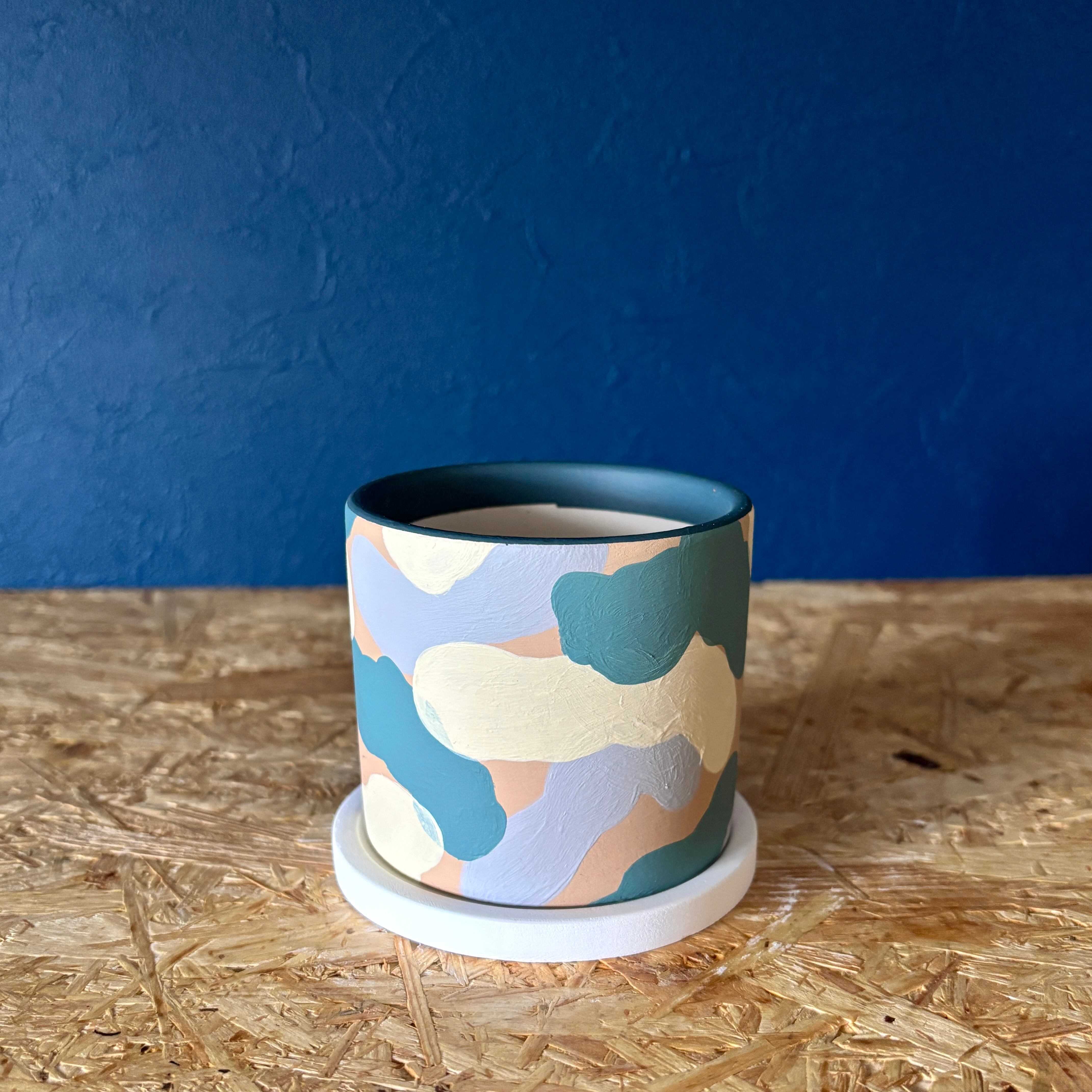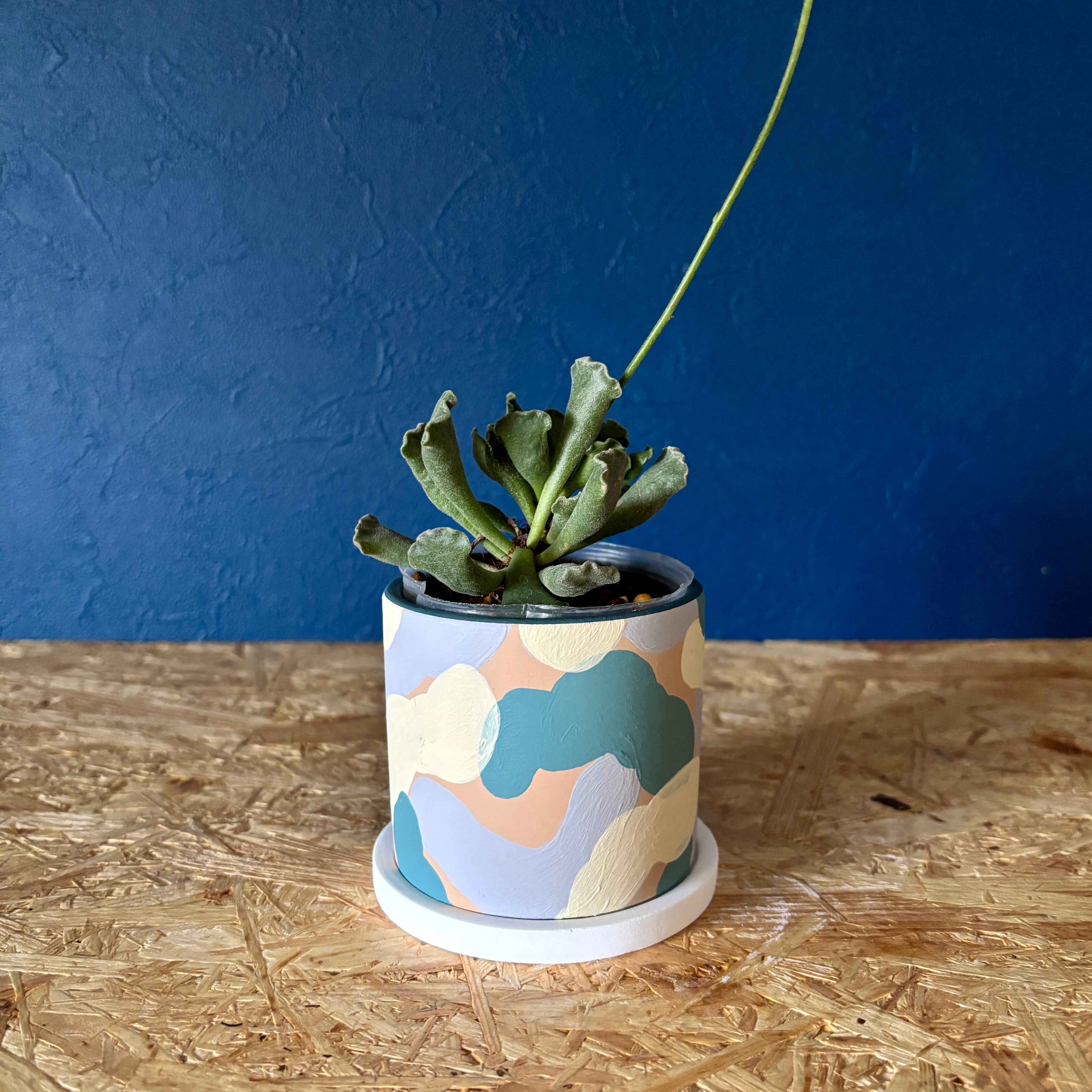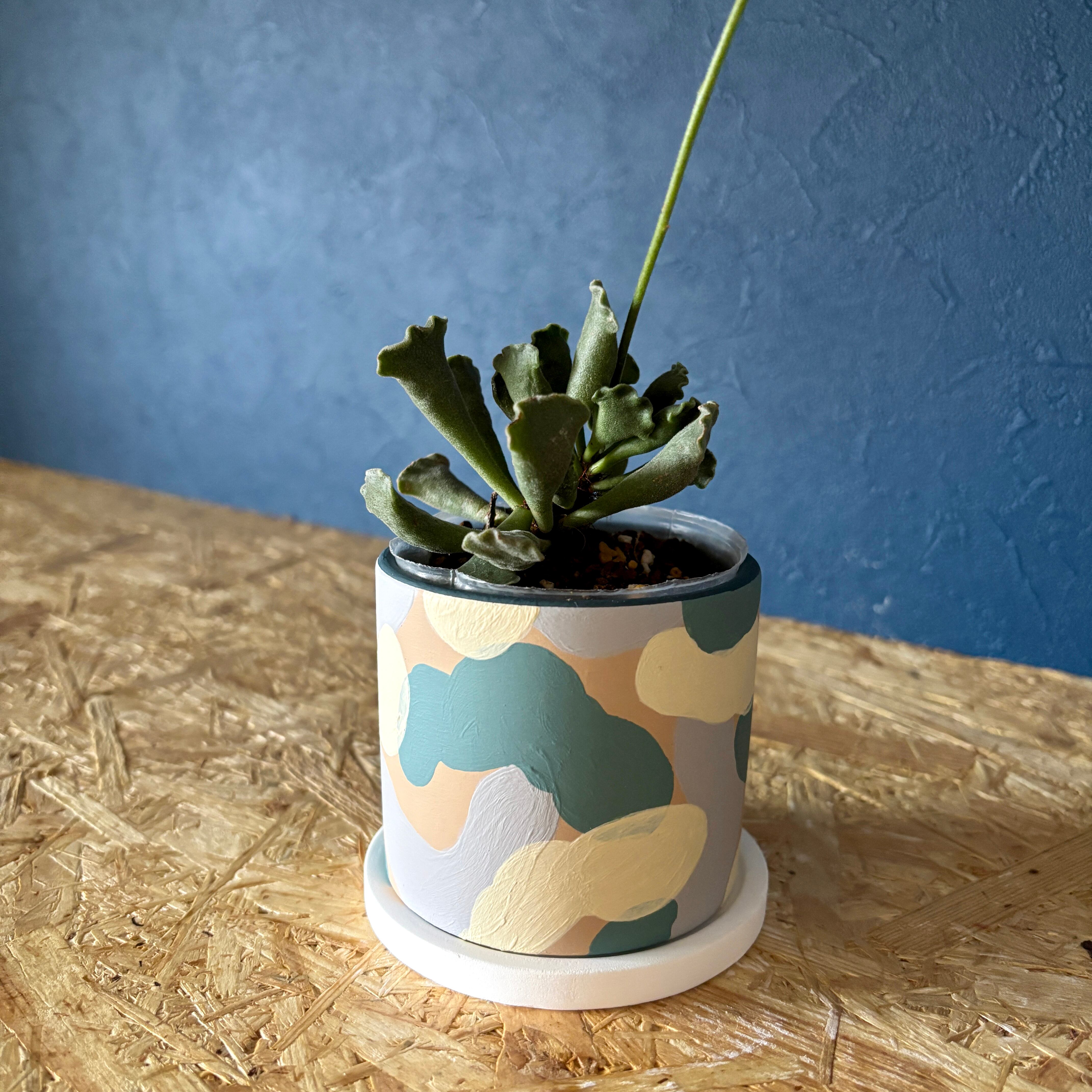 ひとつひとつ陶器やガラス素材の器にアクリル樹脂でペイントし、シリコンコーティングで防水加工を施した植木鉢作品"Painting Pot"です。
