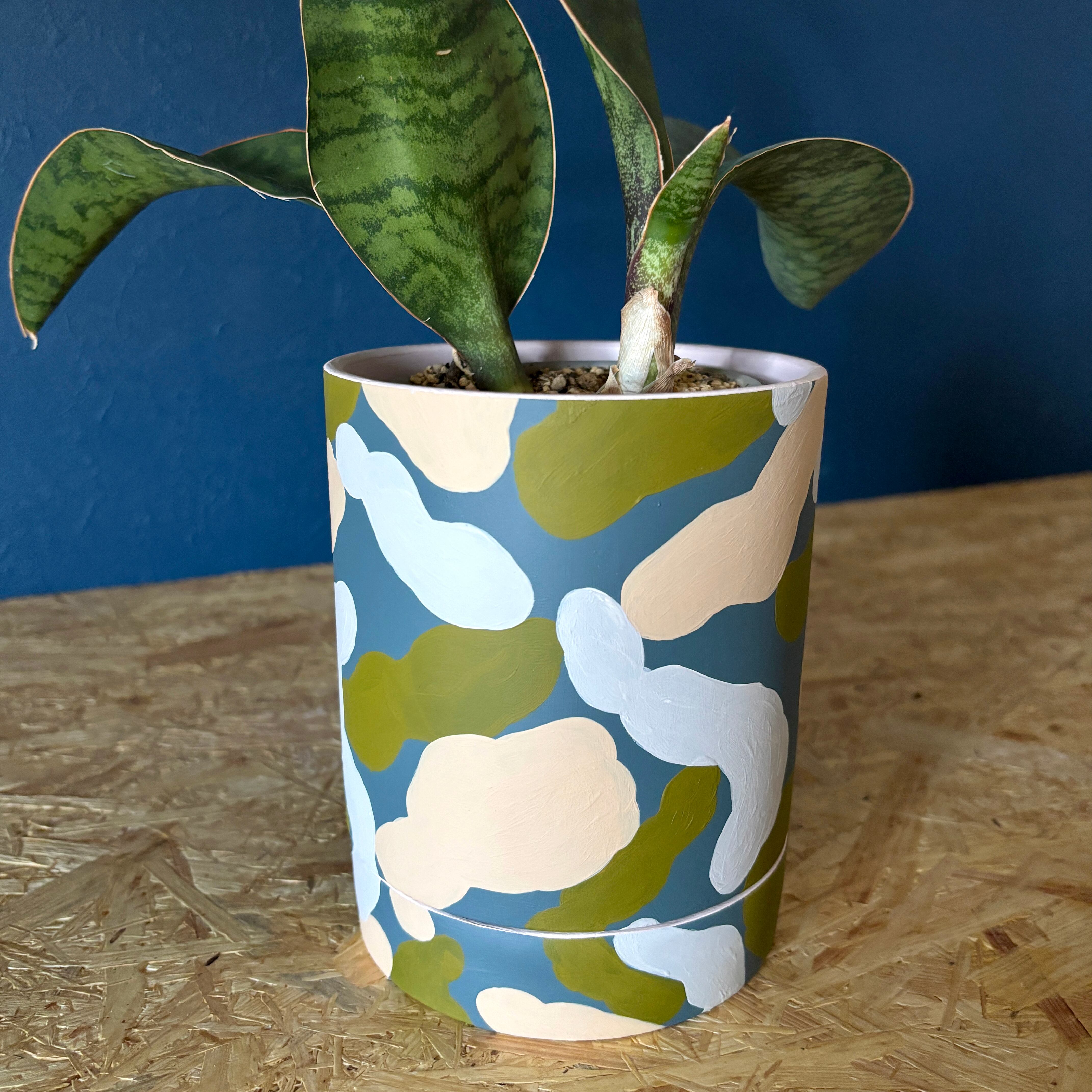 ひとつひとつ陶器やガラス素材の器にアクリル樹脂でペイントし、シリコンコーティングで防水加工を施した植木鉢作品"Painting Pot"です。