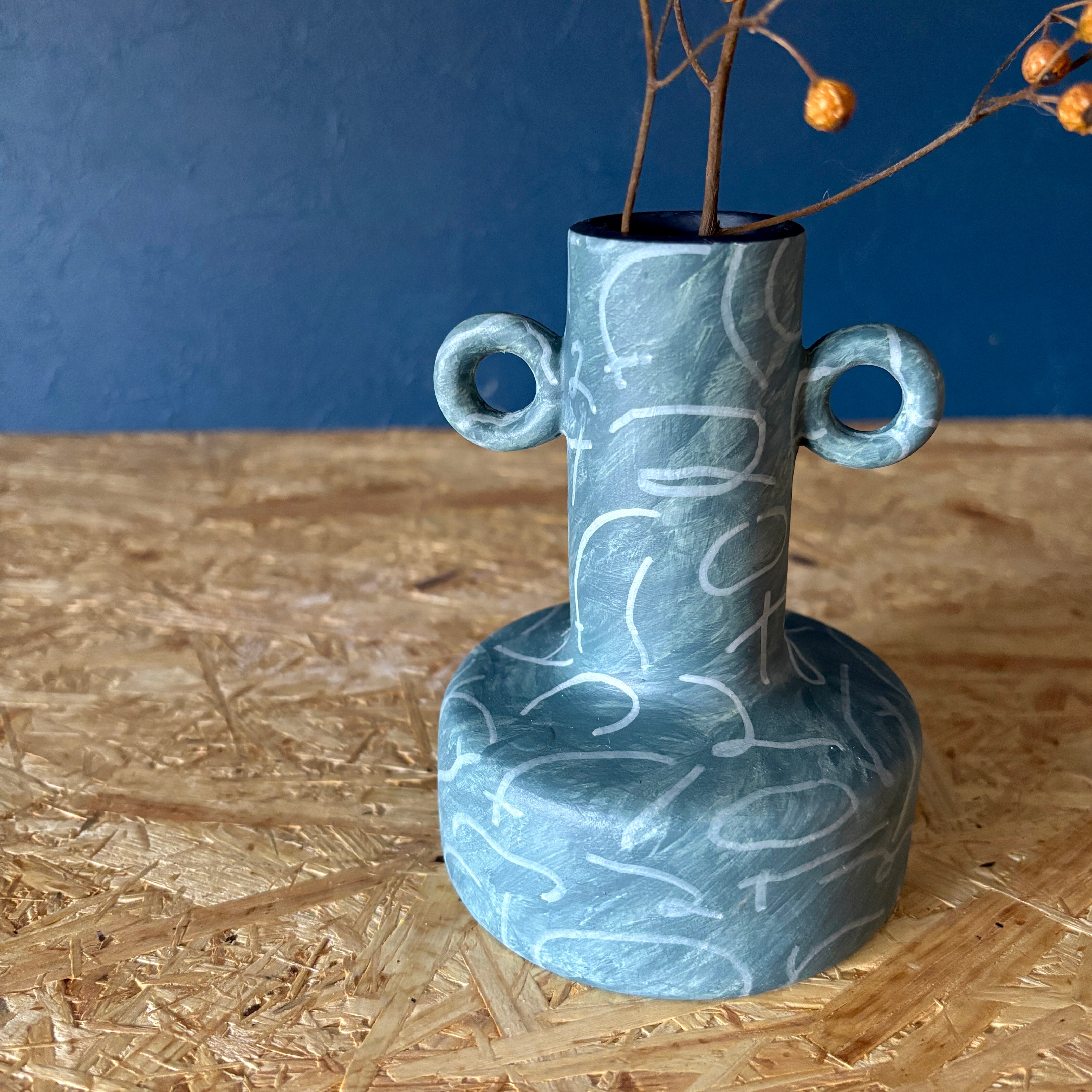 ひとつひとつ陶器やガラス素材の器にアクリル樹脂でペイントし、シリコンコーティングで防水加工を施した花器作品"Painting Vase"です。