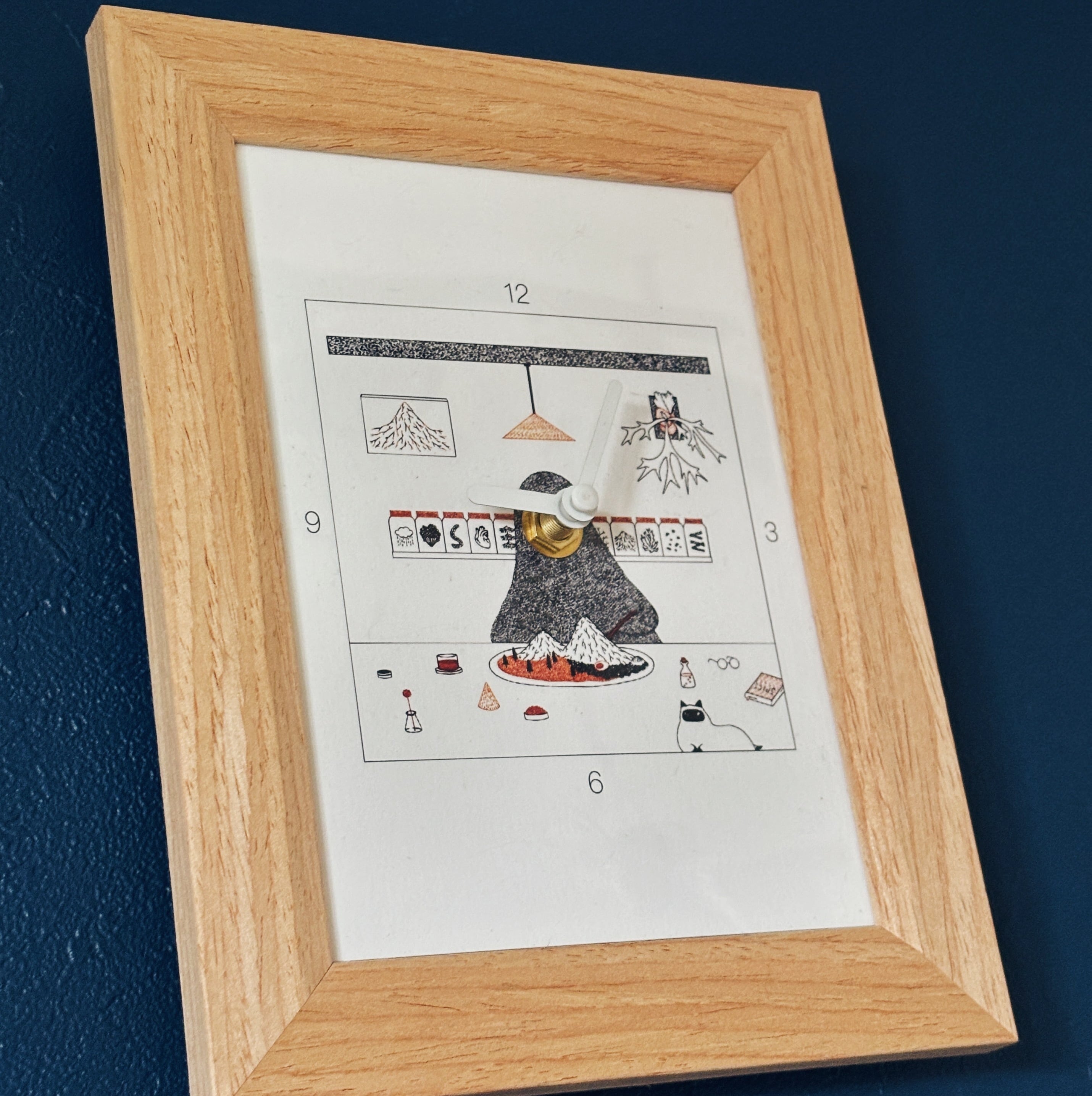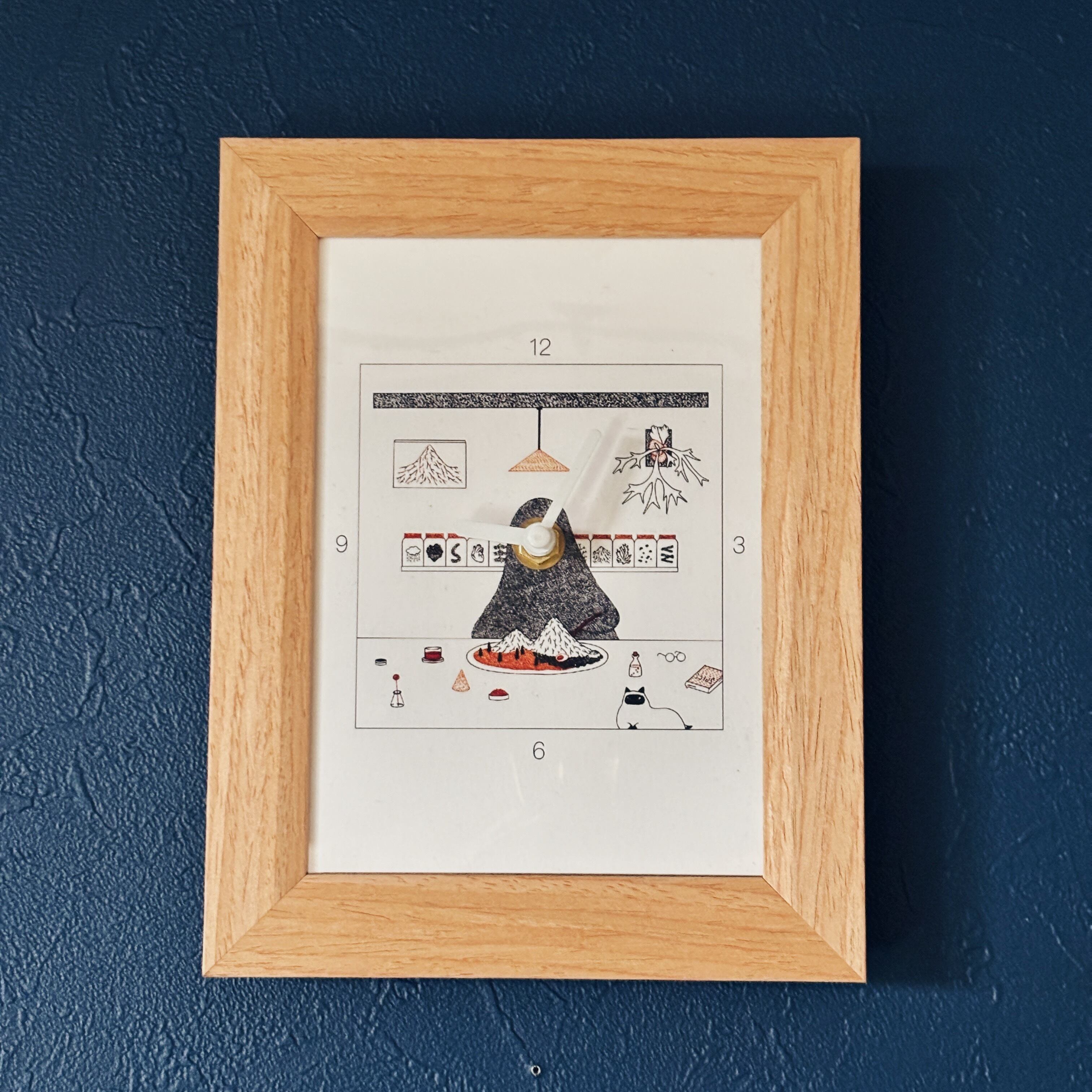 から「カレーの日」をプリントし、フレーミングした掛け時計。