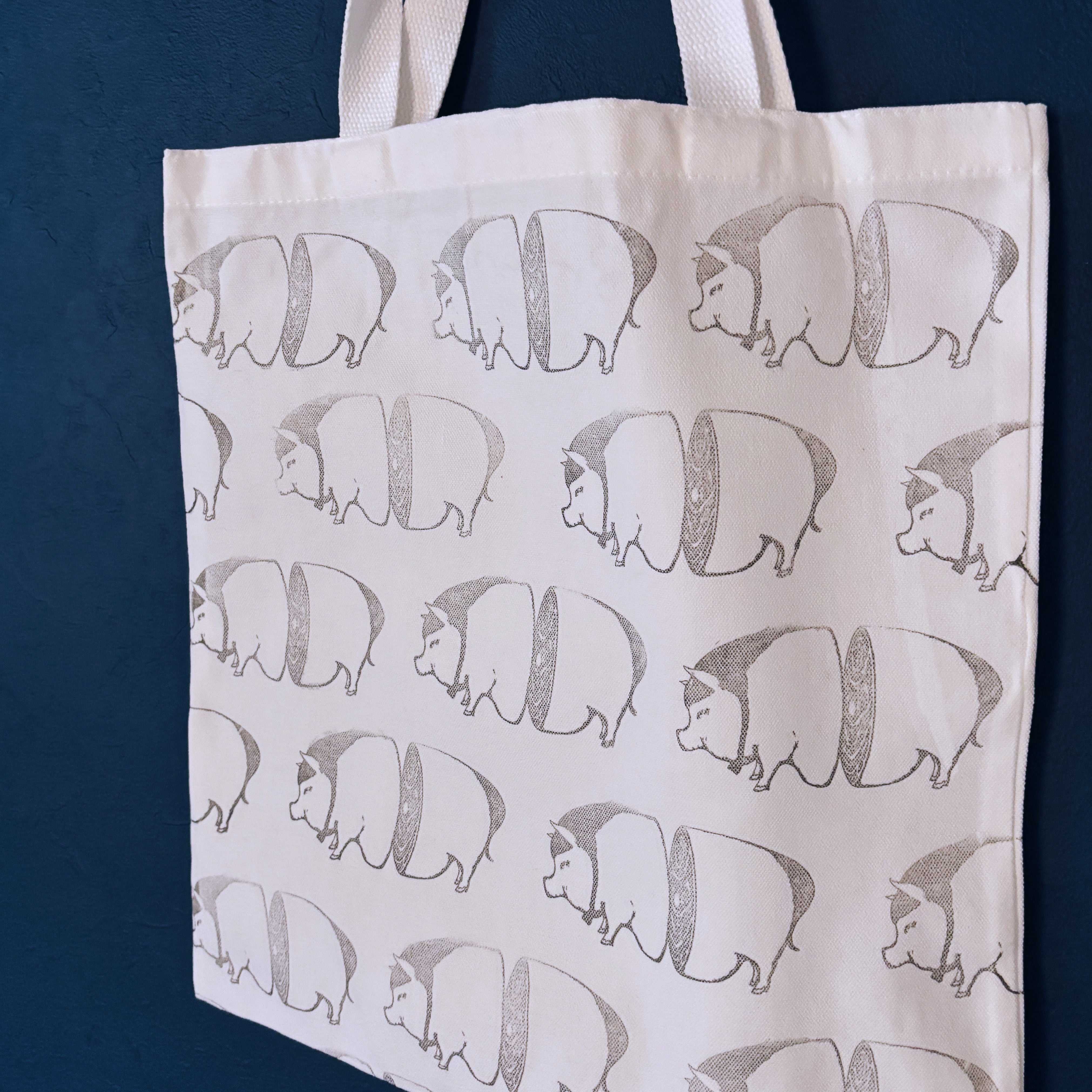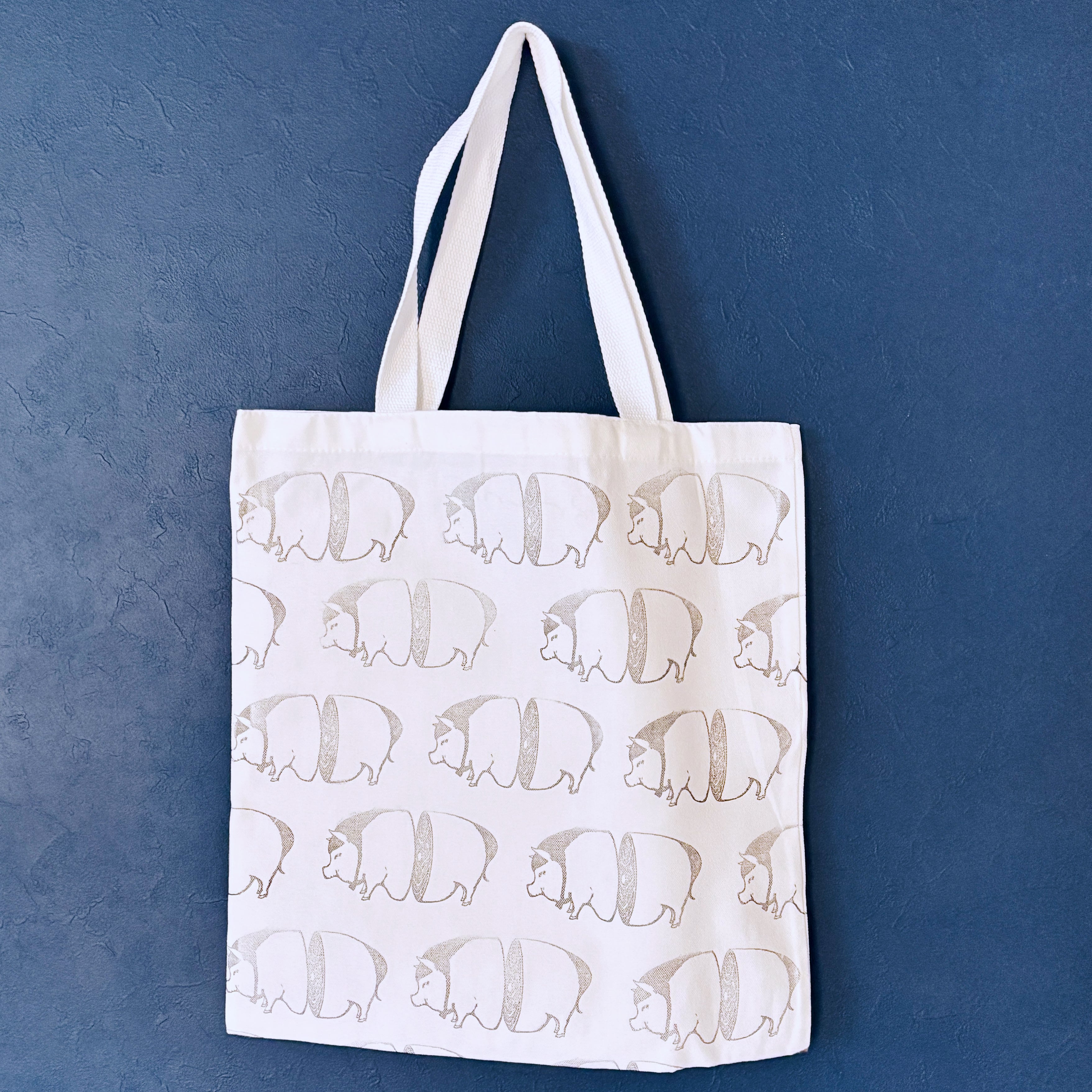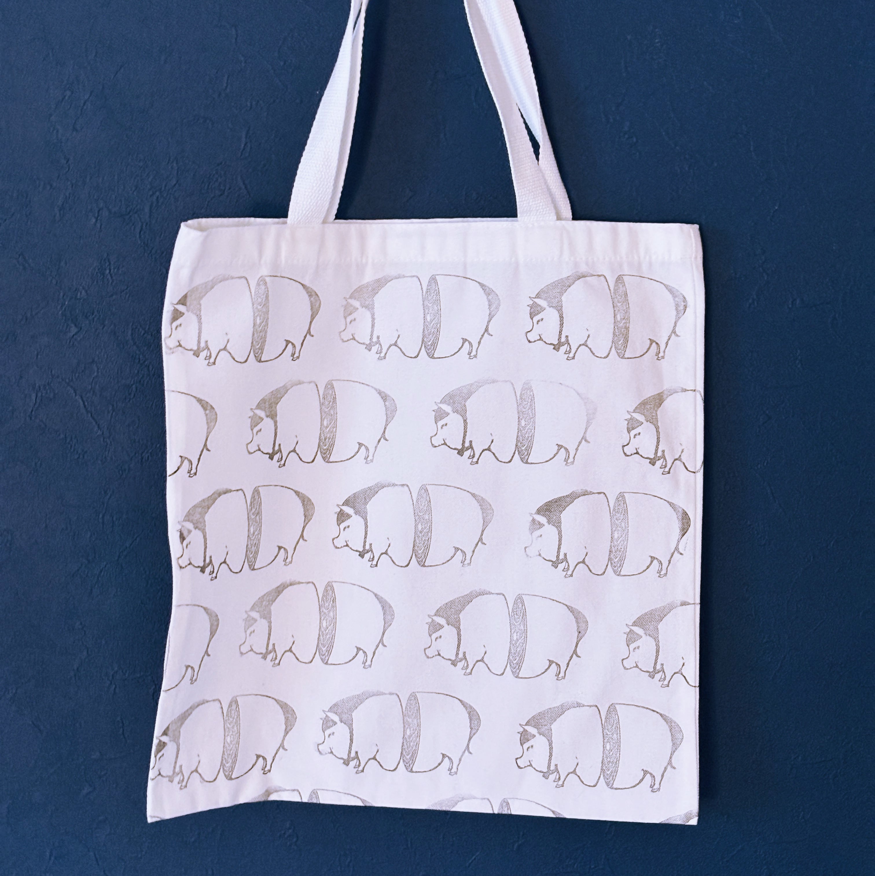スタンピングホワイトトートバッグ "pig sppa!"