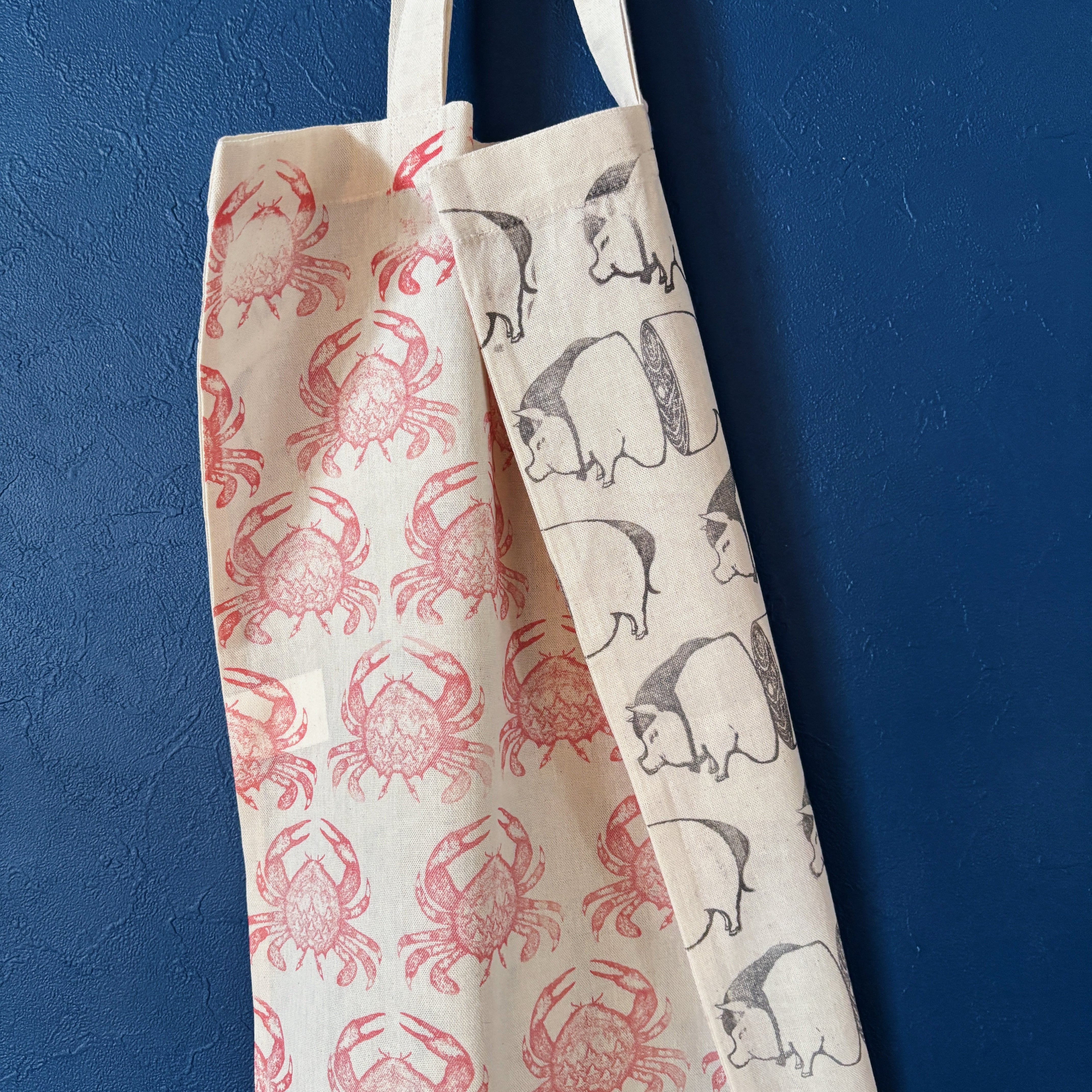 スタンピング薄手トートバッグ "pig sppa!"/"山蟹"